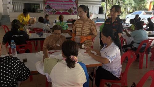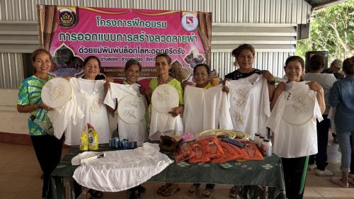ในการนี้ นางสาวธนิกานต์ หยังสู นายอำเภอนาโยง ได้ให้เกียรติพบปะ ให้กำลังใจผู้เข้าร่วมโครงการฝึกอบรมการออกแบบสร้างลวดลายผ้าด้วยแม่พิมพ์บล๊อกโลหะดอกศรีตรัง” ณ สถานที่ดังกล่าวด้วย
